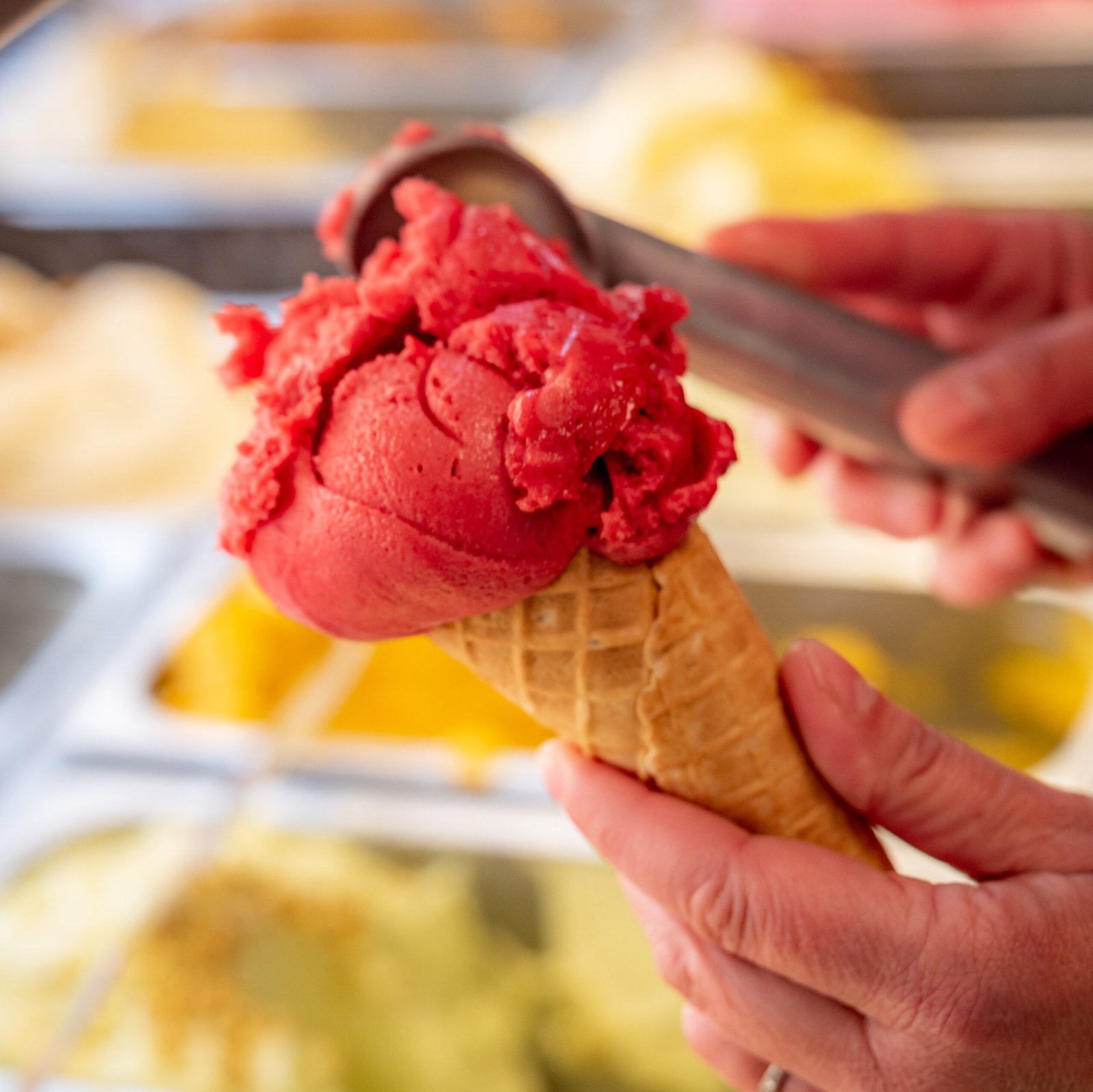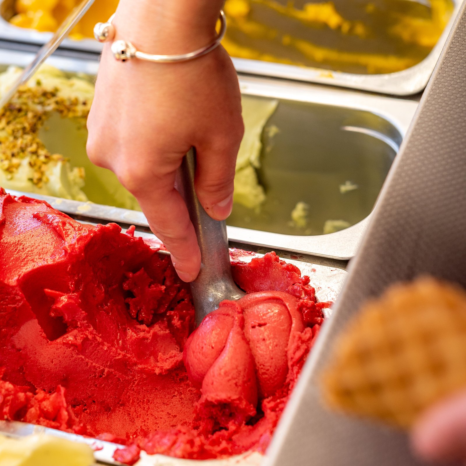 Parfum de glaces qui tournent en vitrine pour pouvoir varier les plaisirs avec des parfums originaux comme les rillettes.